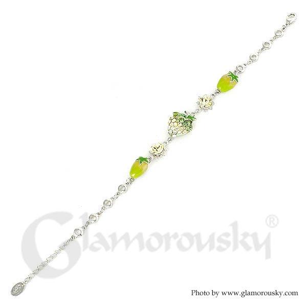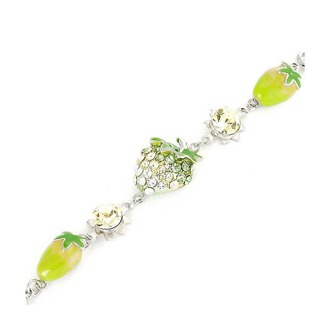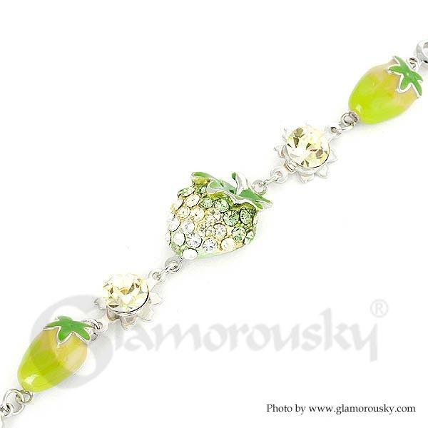 Dreamy Strawberry Bracelet with Green and Silver Austrian Element Crystals