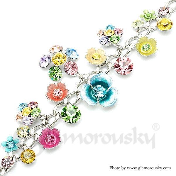 Flower Bracelet with Multi-colour Austrian Element Crystals and Flower Charms
