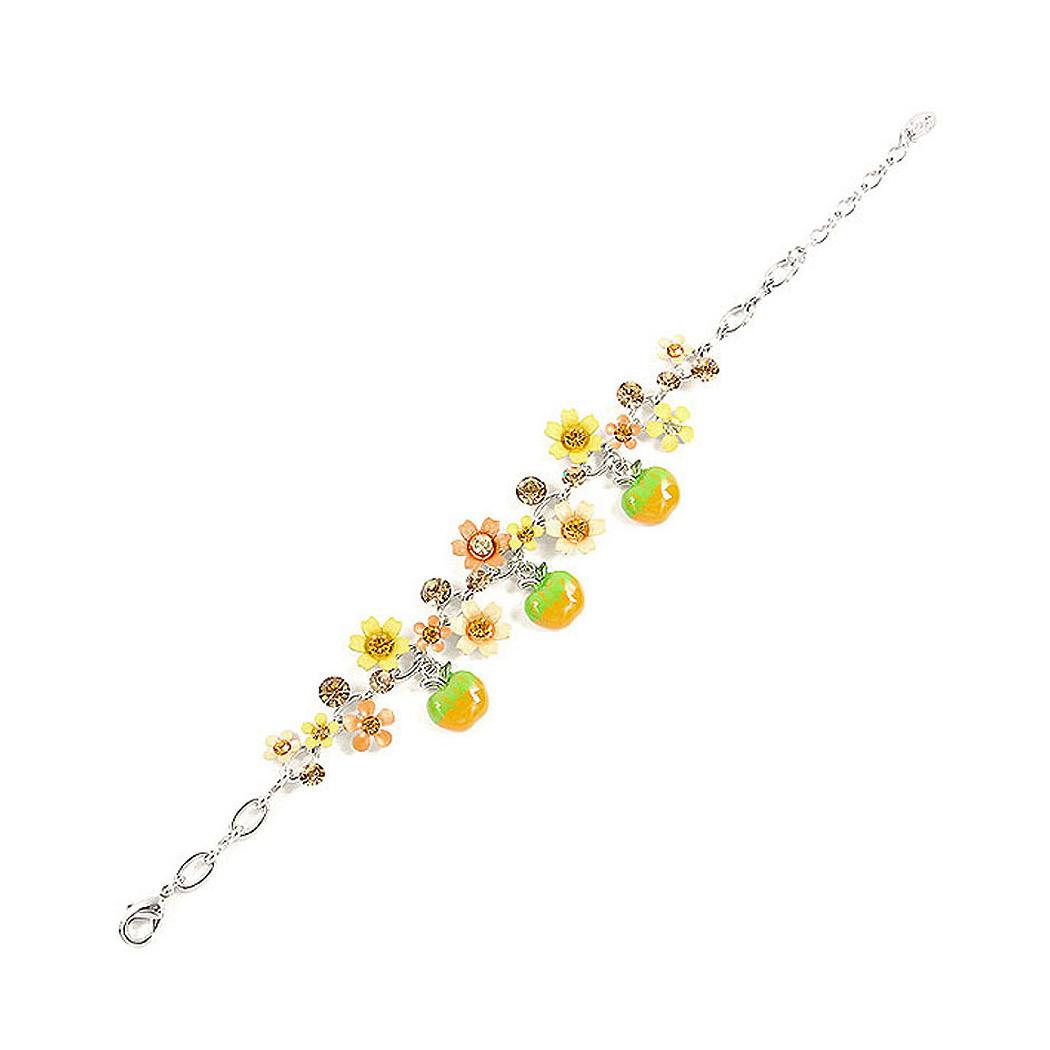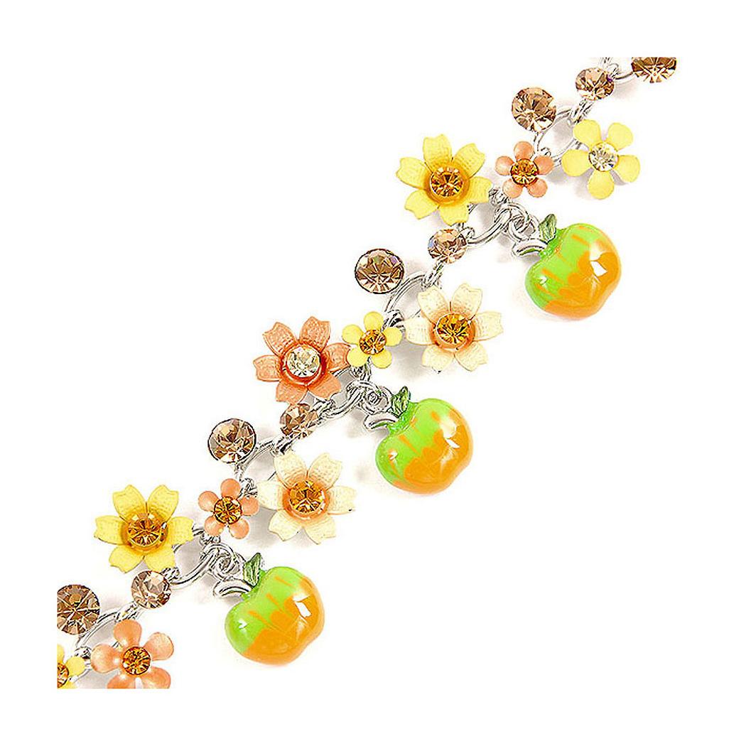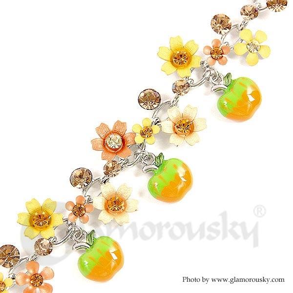 Orange and Yellow Flower Bracelet with Austrian Element Crystals and Green Apple Charms
