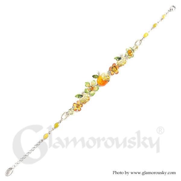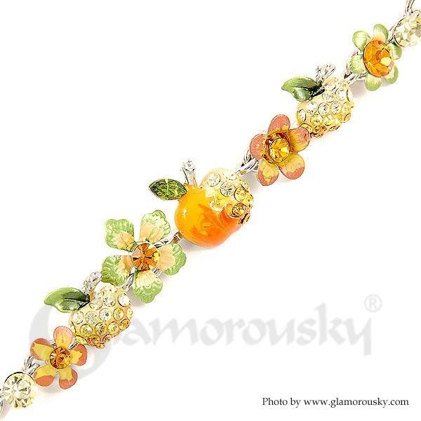 Category:BraceletCollection:Fruity FruityMetail:Silver-Plated Pewter(Silver)Stone:Austrian Crystal(Orange)