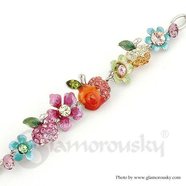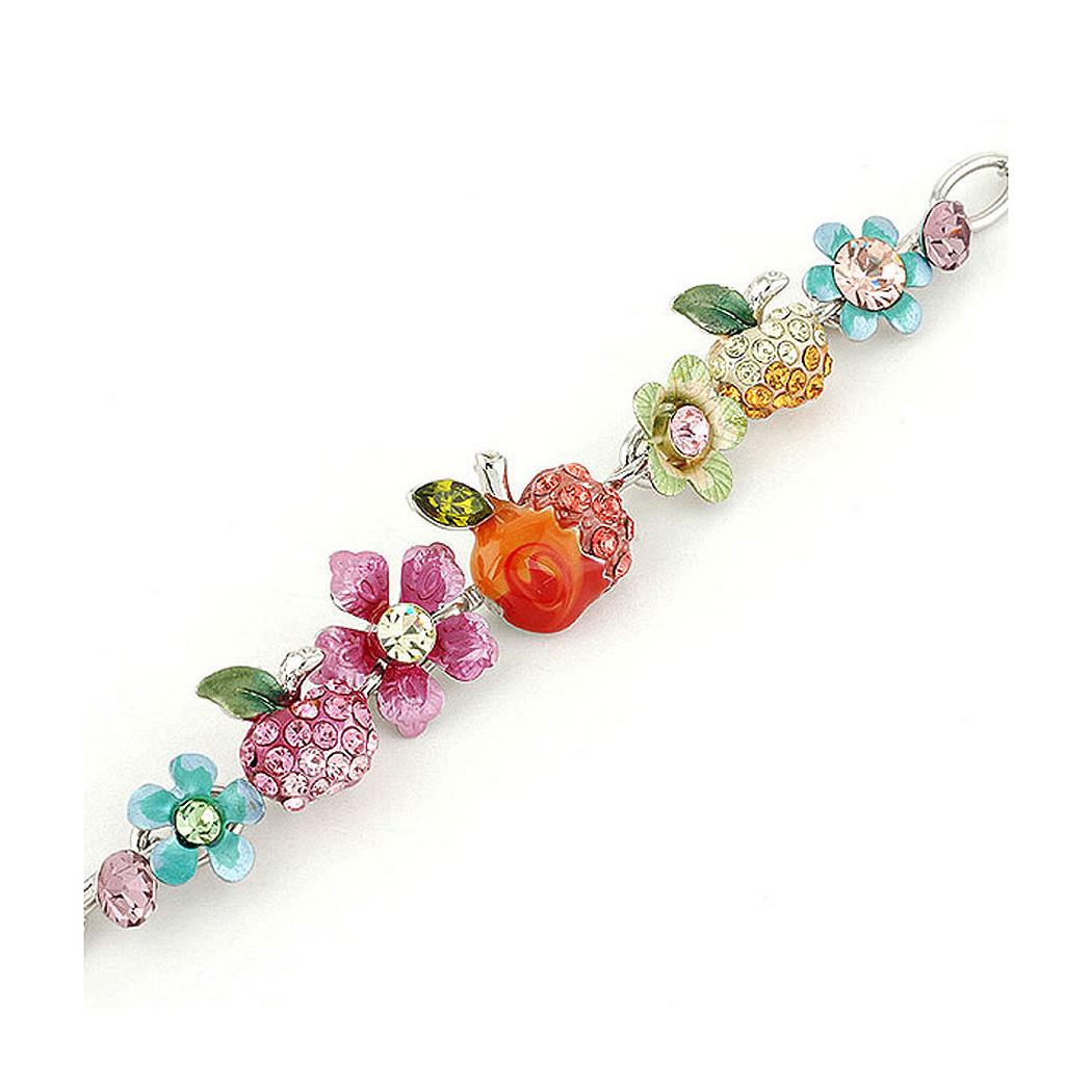 Apple and Flower Bracelet with Multi Color Austrian Element Crystals