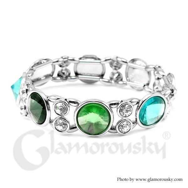 Category:BangleCollection:Banquet EleganceMetail:Silver-Plated Pewter(Silver)Stone:Crystal Glass(Dark Green)