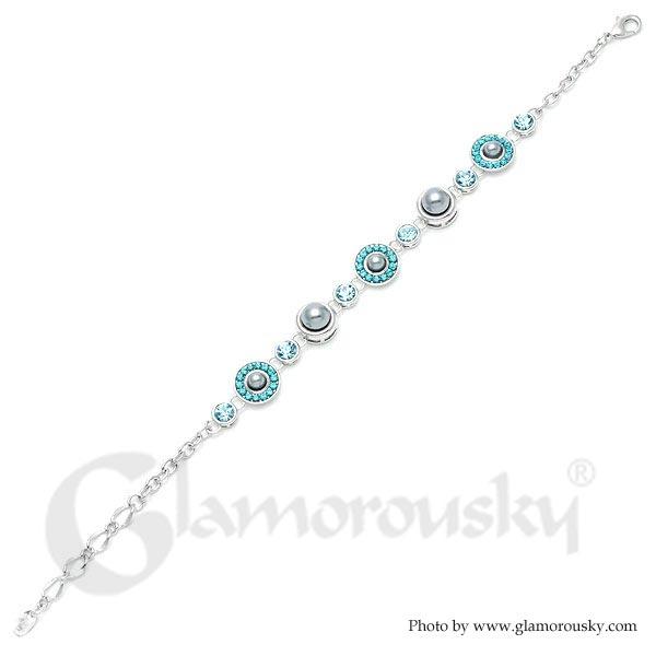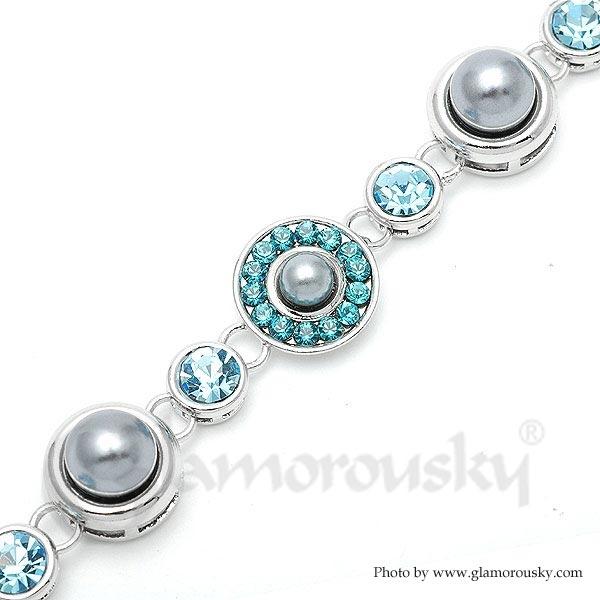 Crystal Gazing and Universe Bracelet with Dark Grey Fashion Pearl and Blue Austrian Element Crystals