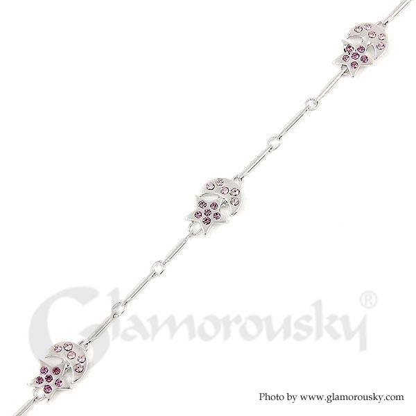 Sparkling Moon and Star Bracelet with Purple Austrian Element Crystals