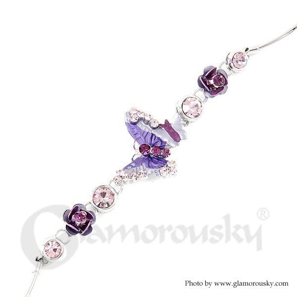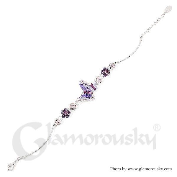 Category:BraceletCollection:Flower NymphMetail:Silver-Plated Pewter(Silver)Stone:Austrian Crystal(Purple)