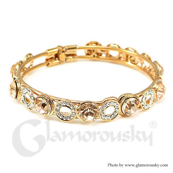 Elegant Bangle with Silver Austrian Element Crystal and Orange CZ
