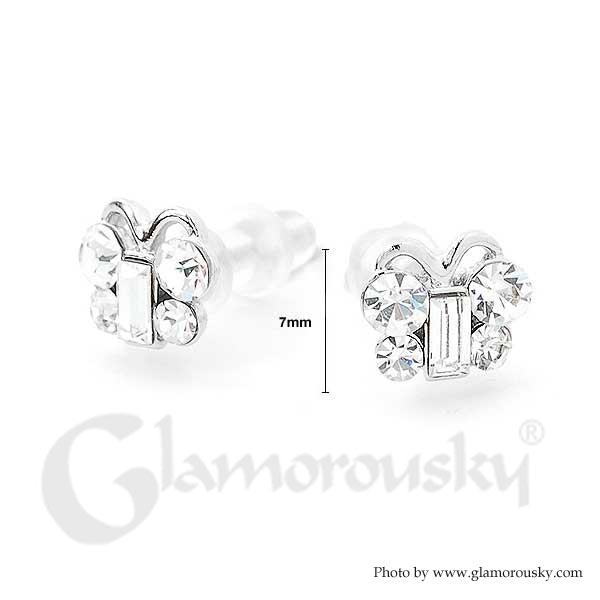 Cutie Butterfly Earrings with White Austrian Element Crystals and Crystal Glass