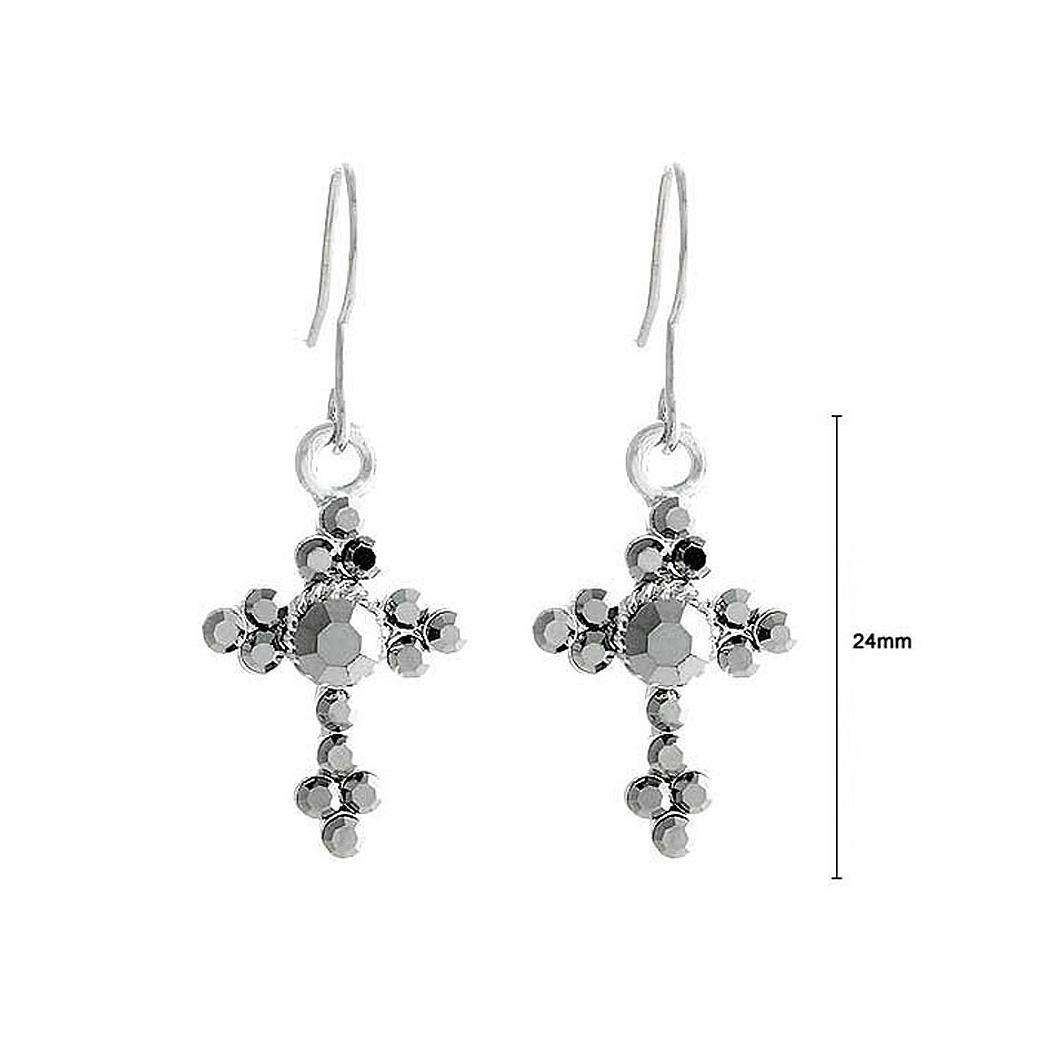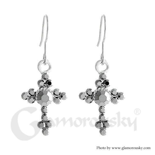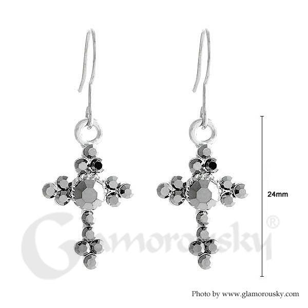 Crosslet Pair Earing with Dark Grey Austrian Element Crystals
