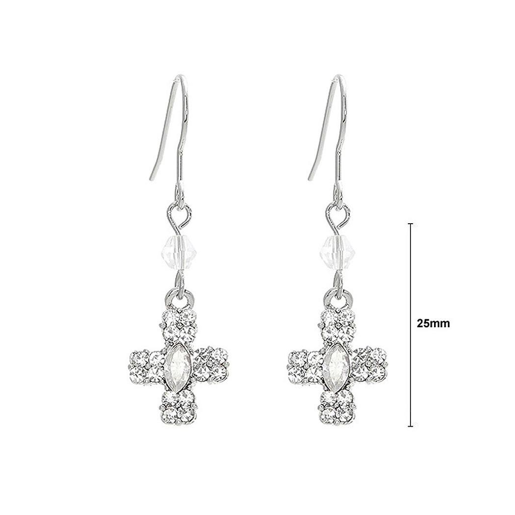 Glistening Cross Earrings with Silver Austrian Element Crystals