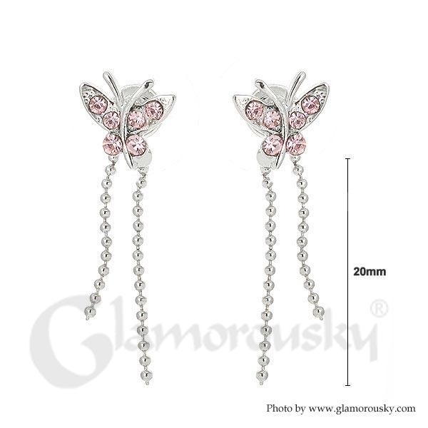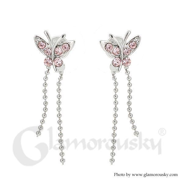 Mini Butterfly Earrings with Pink Austrian Element Crystals