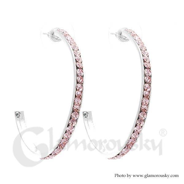 Circular Earrings with Pink Austrian Element Crystals