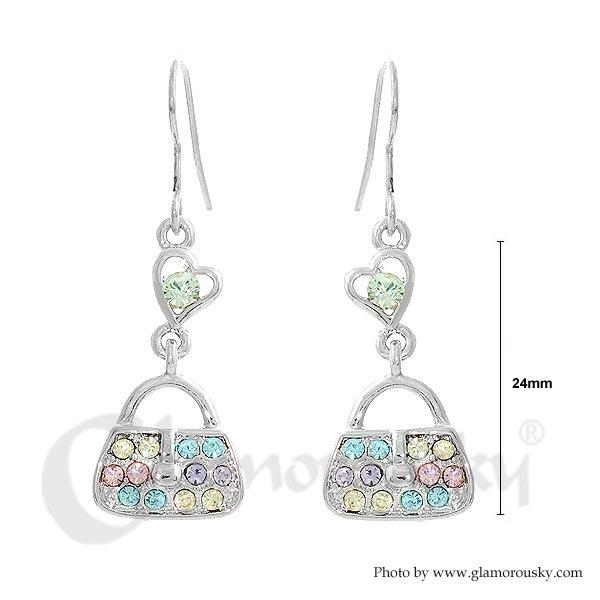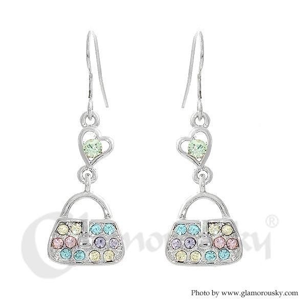 Elegant Round Handbag Earrings with Light-color Austrian Element Crystals