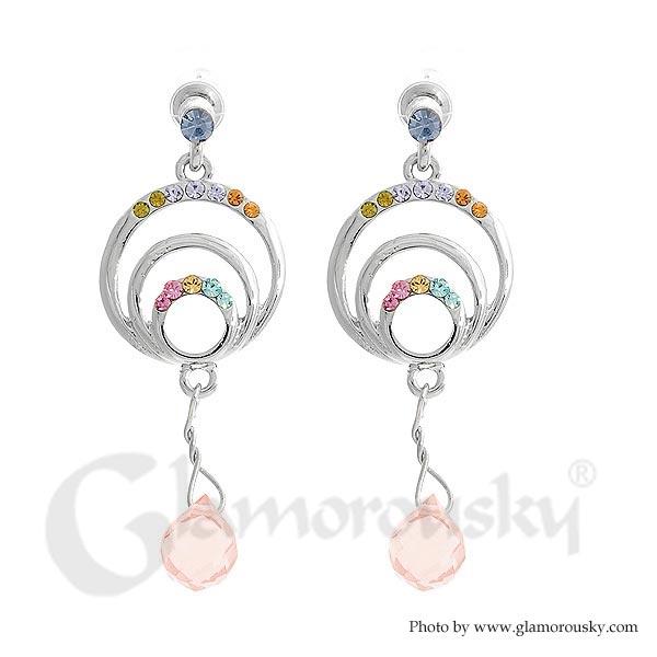 Fantasic Earring with Multi-color Austrian Element Crystals and Orange Crystal Glass