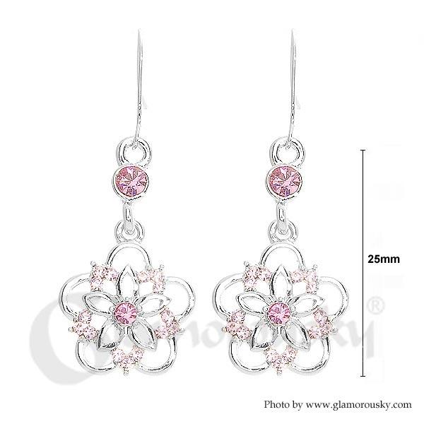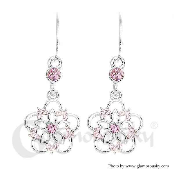Elegant Flower Earrings with Pink Austrian Crystals