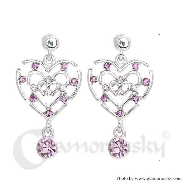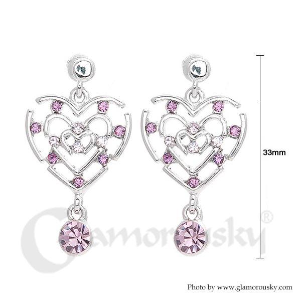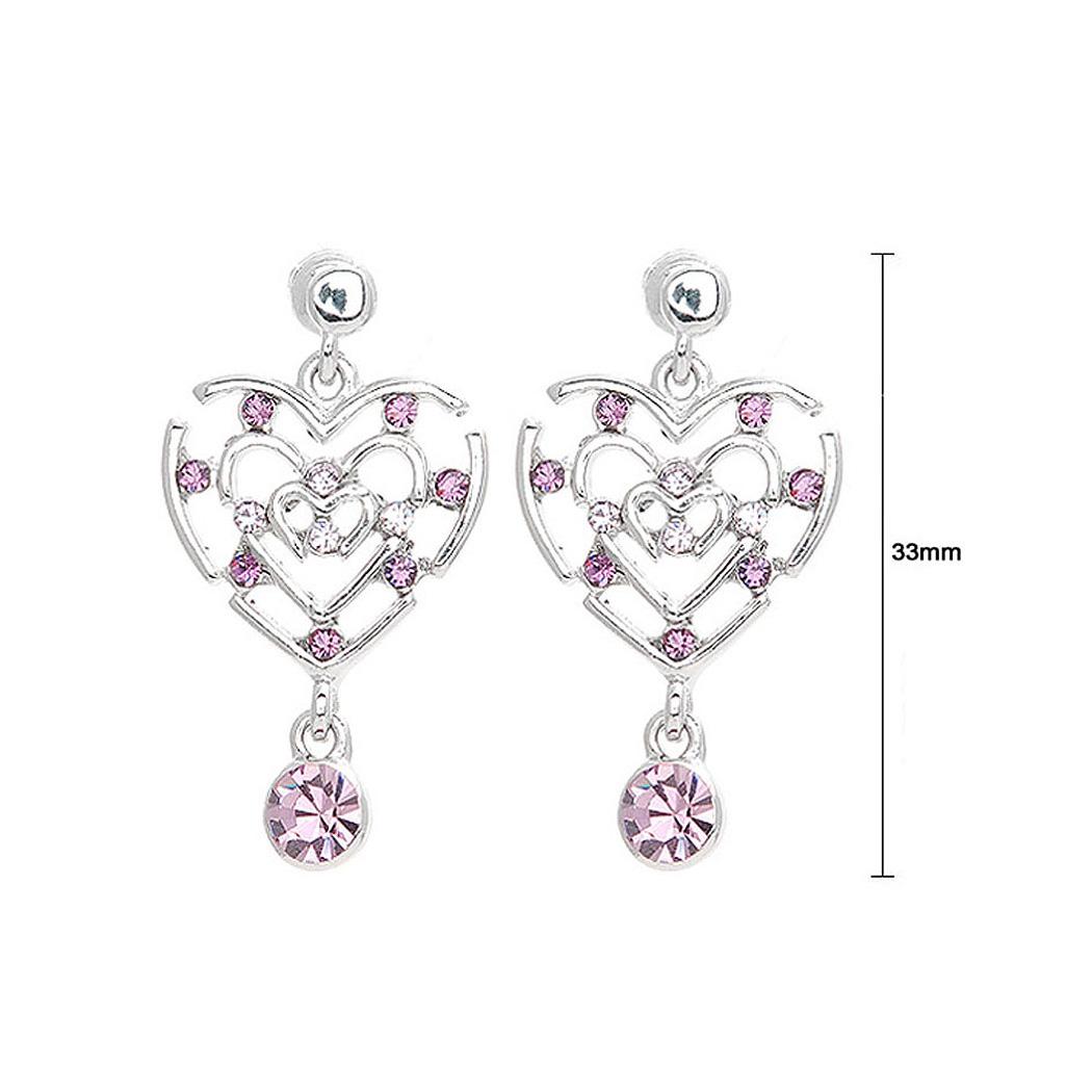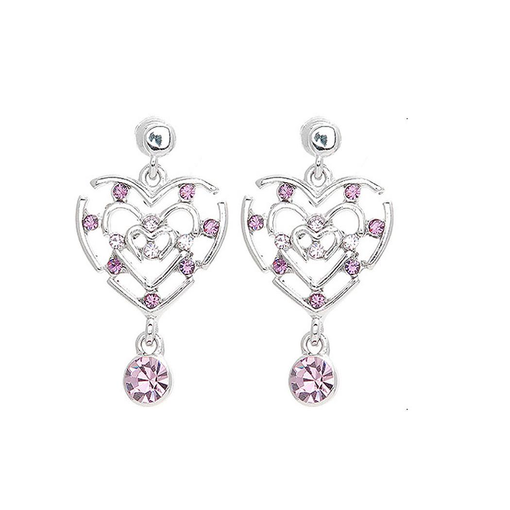 Heart in Heart Earrings with Purple Austrian Element Crystals