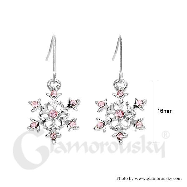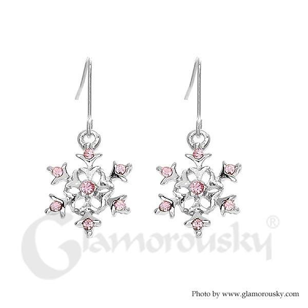 Snow Pattern Earrings with Pink Austrian Element Crystal