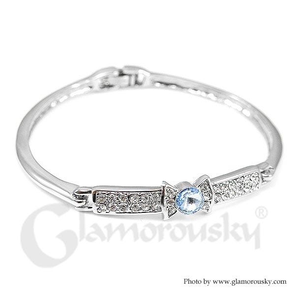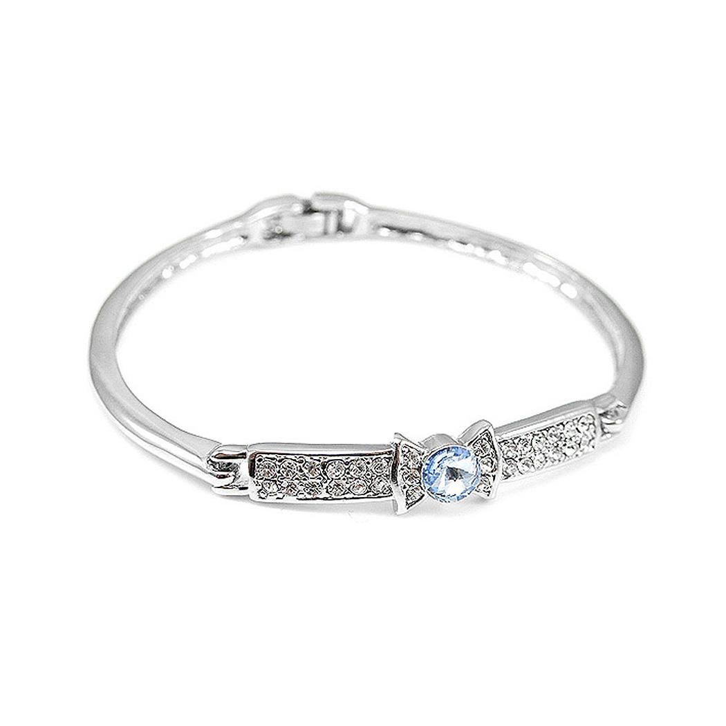 Elegant Bow Tie Bangle with Blue Austrian Element Crystal