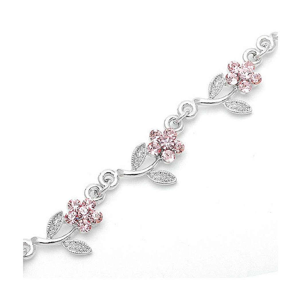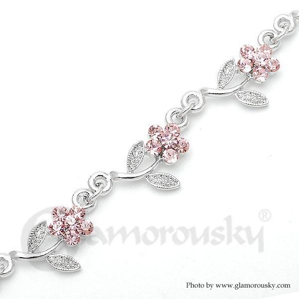 Category:BraceletCollection:Twinkling FlowersMetail:Silver-Plated PewterStone:Austrian Crystal(Pink)