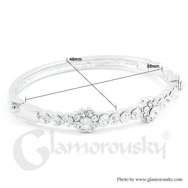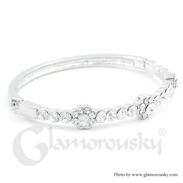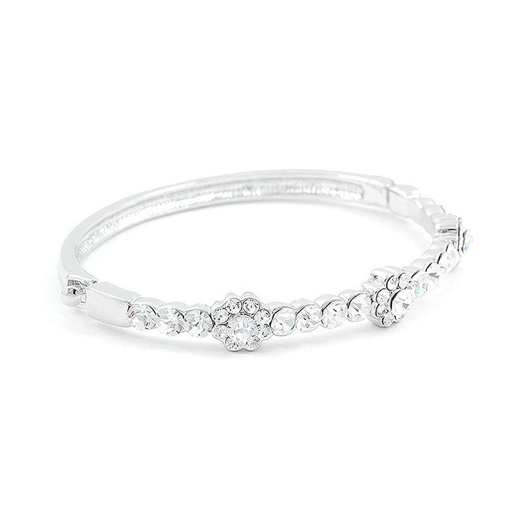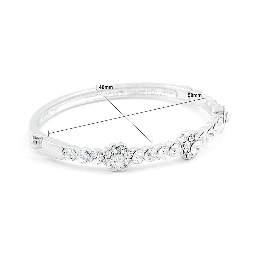 Elegant Flower Bangle with Silver Austrian Element Crystals