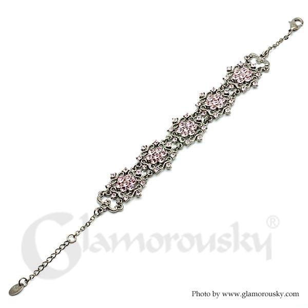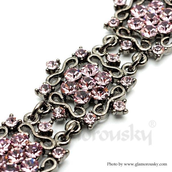 Antique Bracelet with Pink Austrian Element Crystals