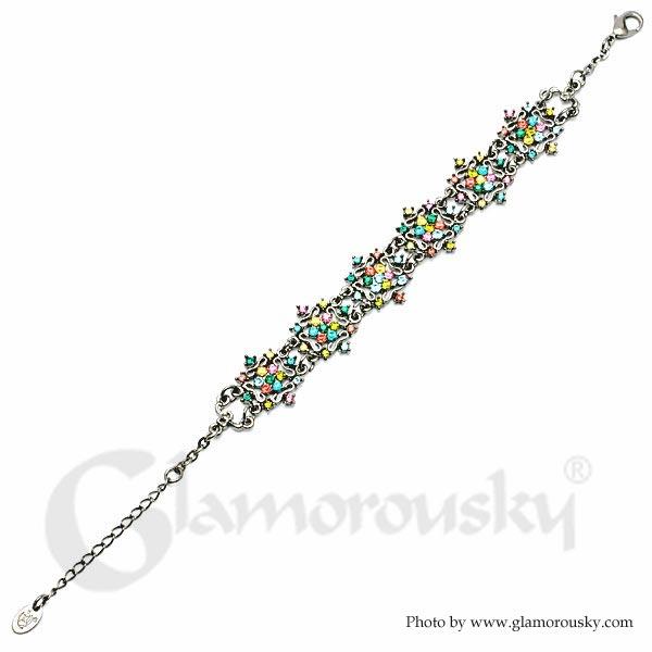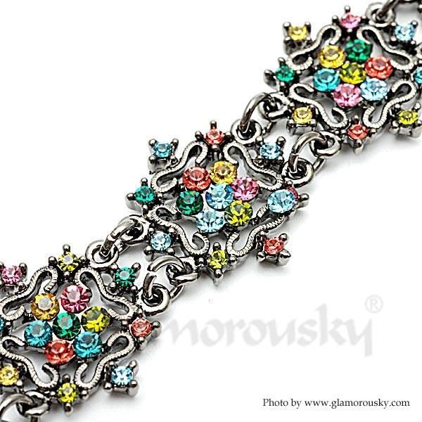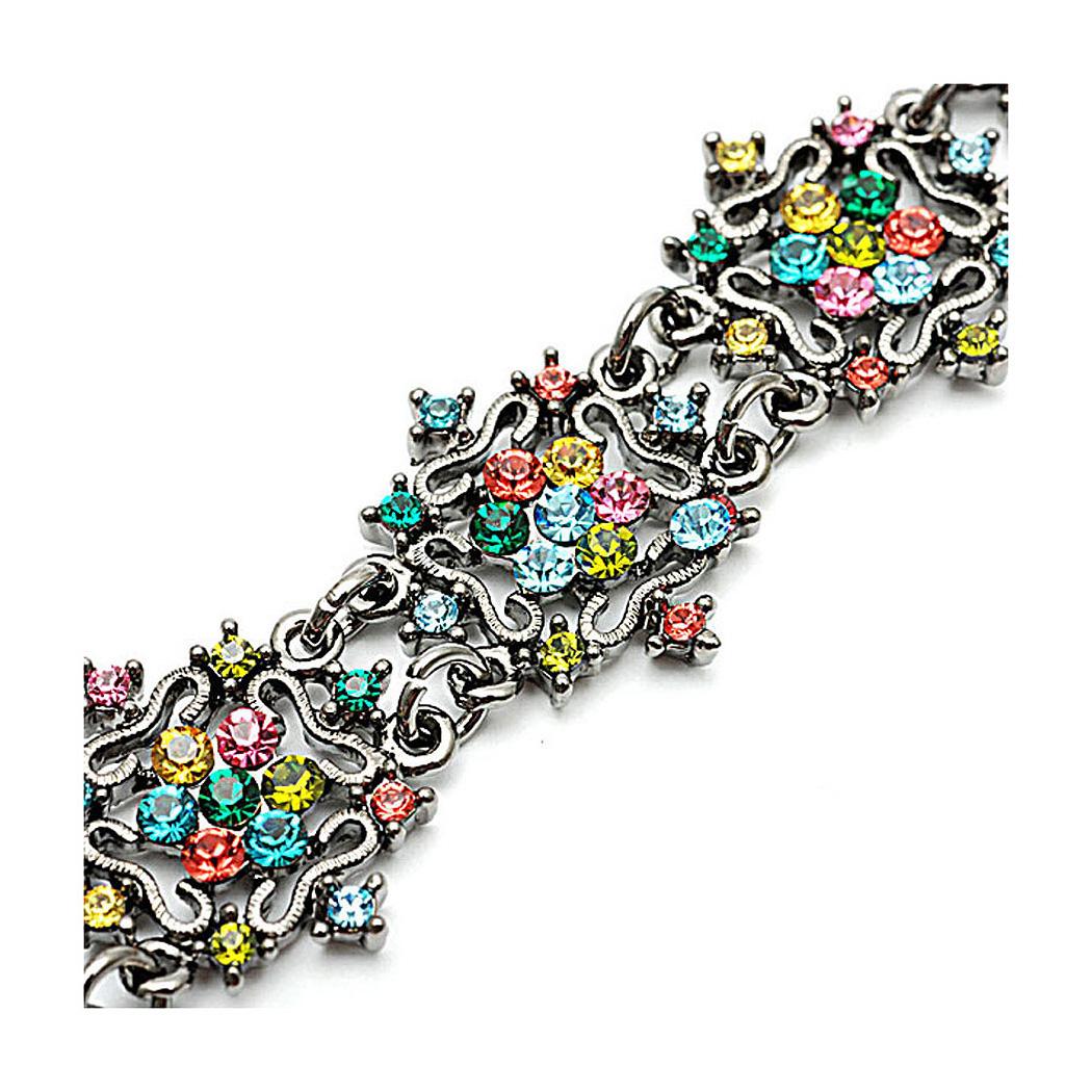 Antique Black Bracelet with Multi-color Austrian Element Crystals