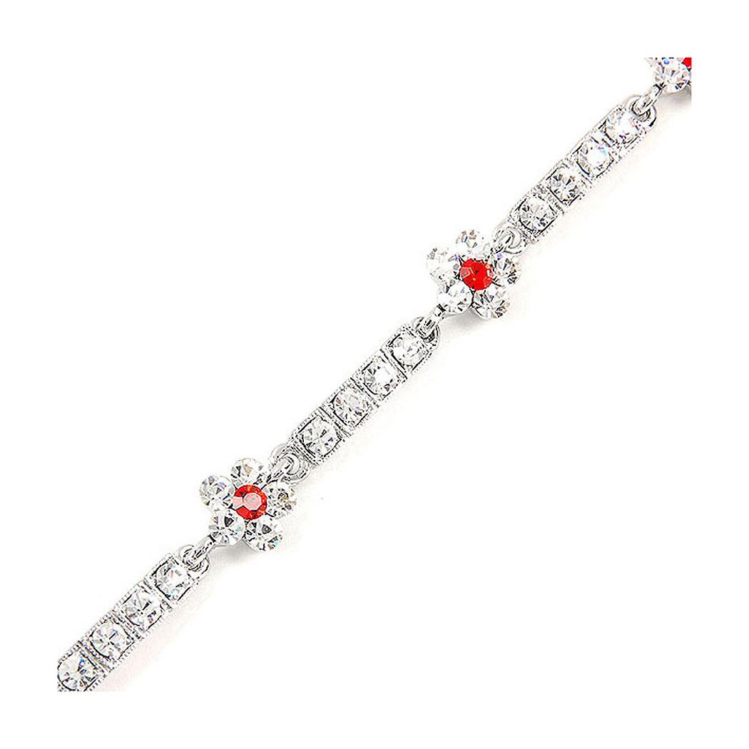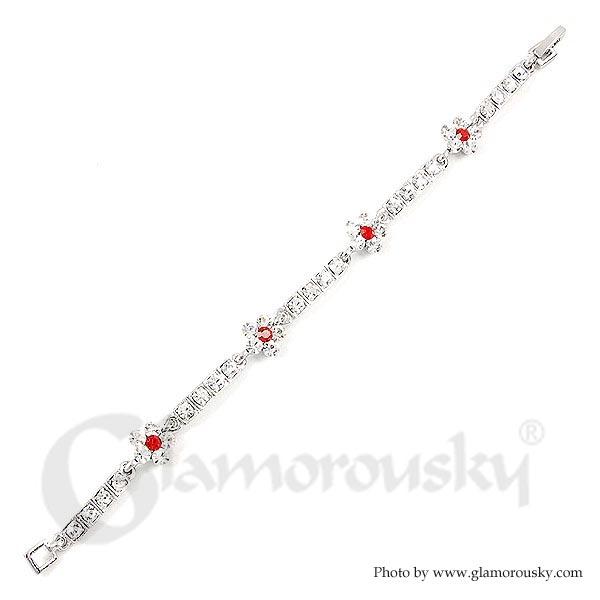 Flower Bracelet with Red and Silver Austrian Element Crystals