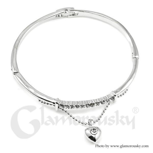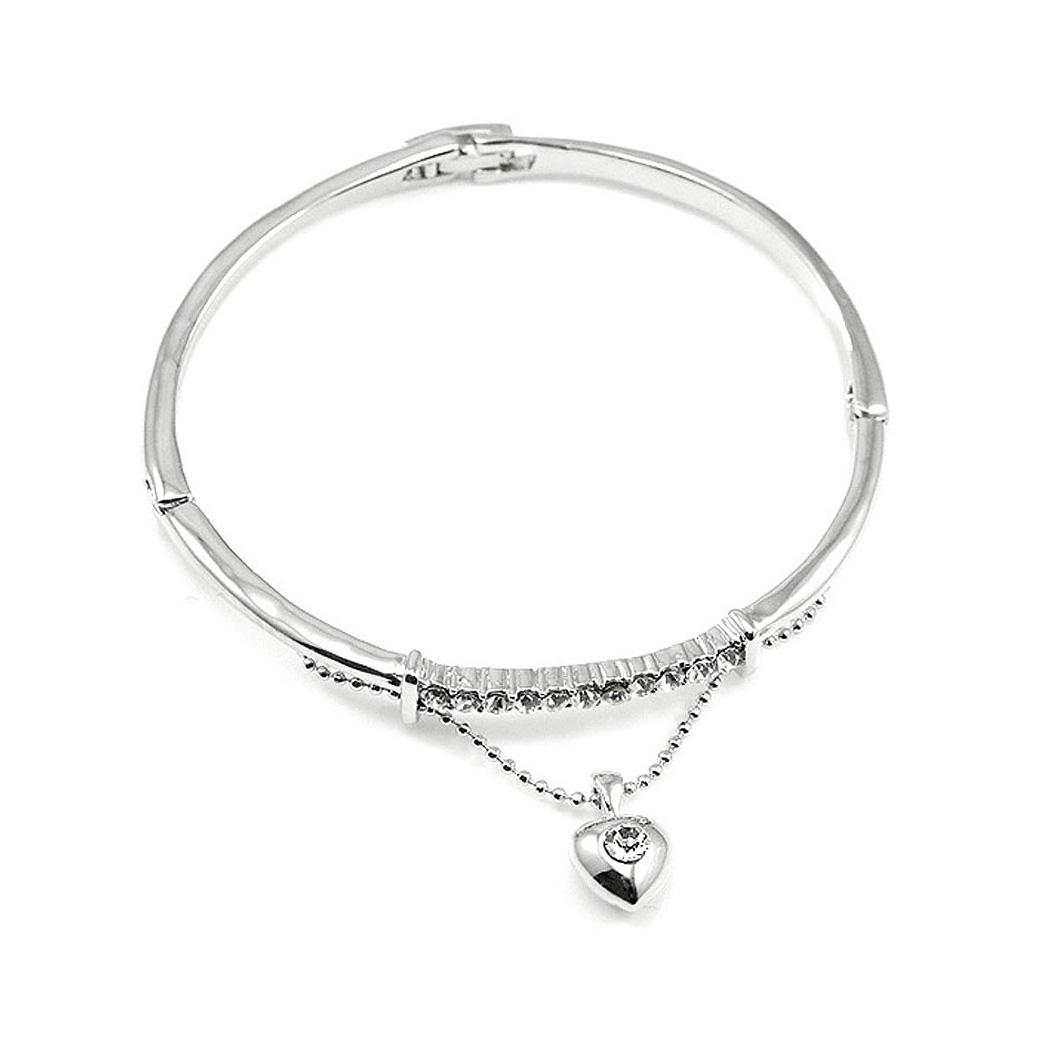 Elegant Bangle with Silver Austrian Element Crystal and Heart Charm