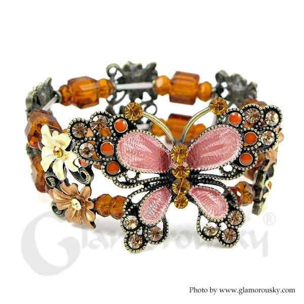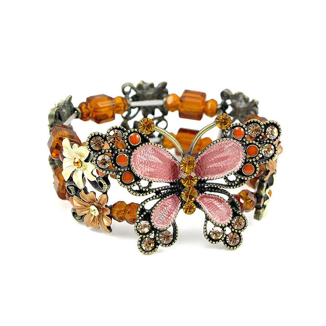 Elegant Butterfly Bangle with Orange Austrian Element Crystal