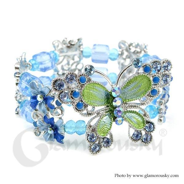 Elegant Butterfly Bangle with Blue Austrian Element Crystal