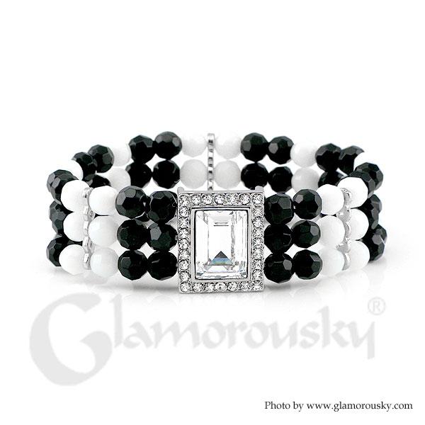 Fancy Bead Bracelet with Silver Austrian Element Crystals