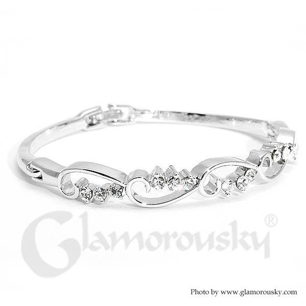 Wavy Bangle with Silver Austrian Element Crystals