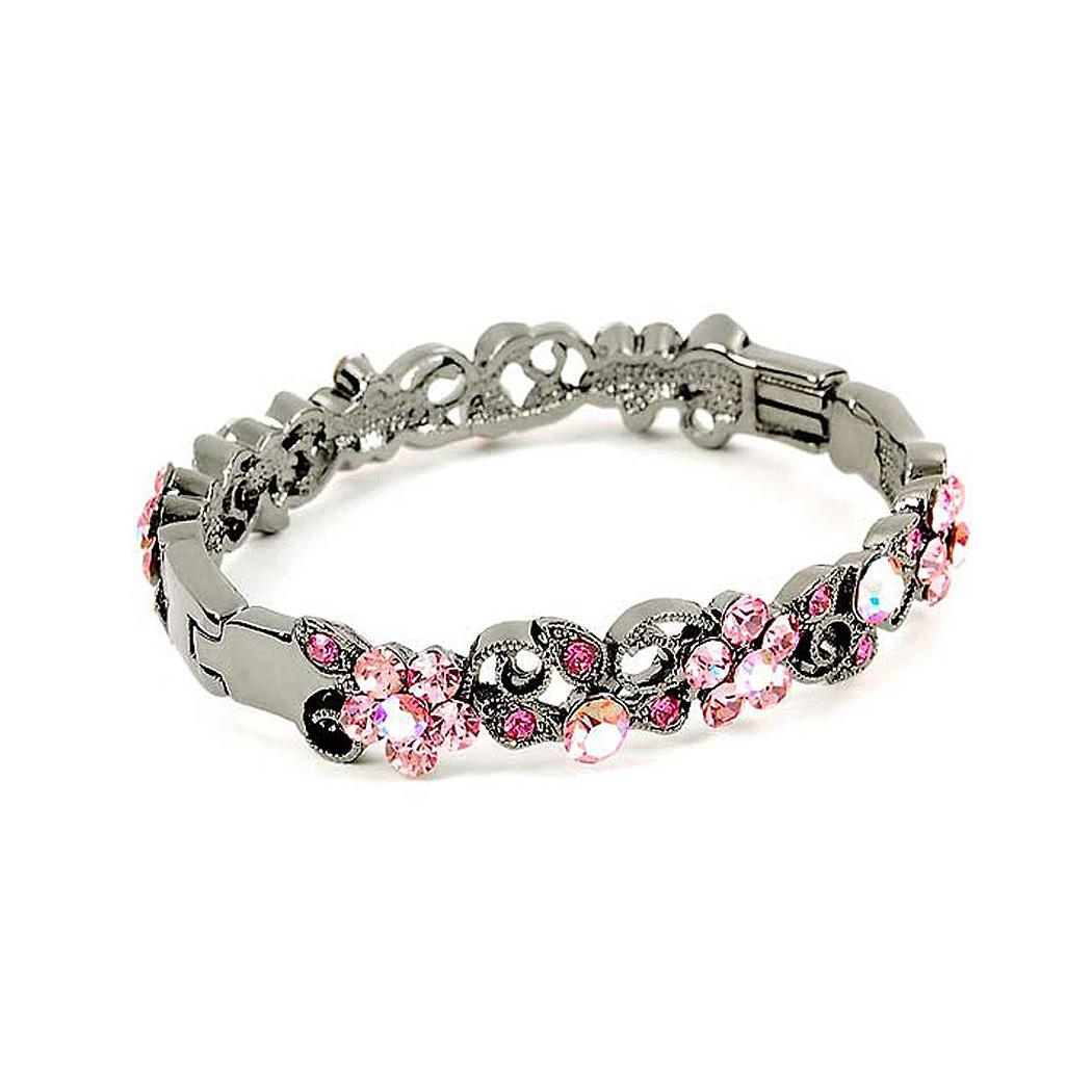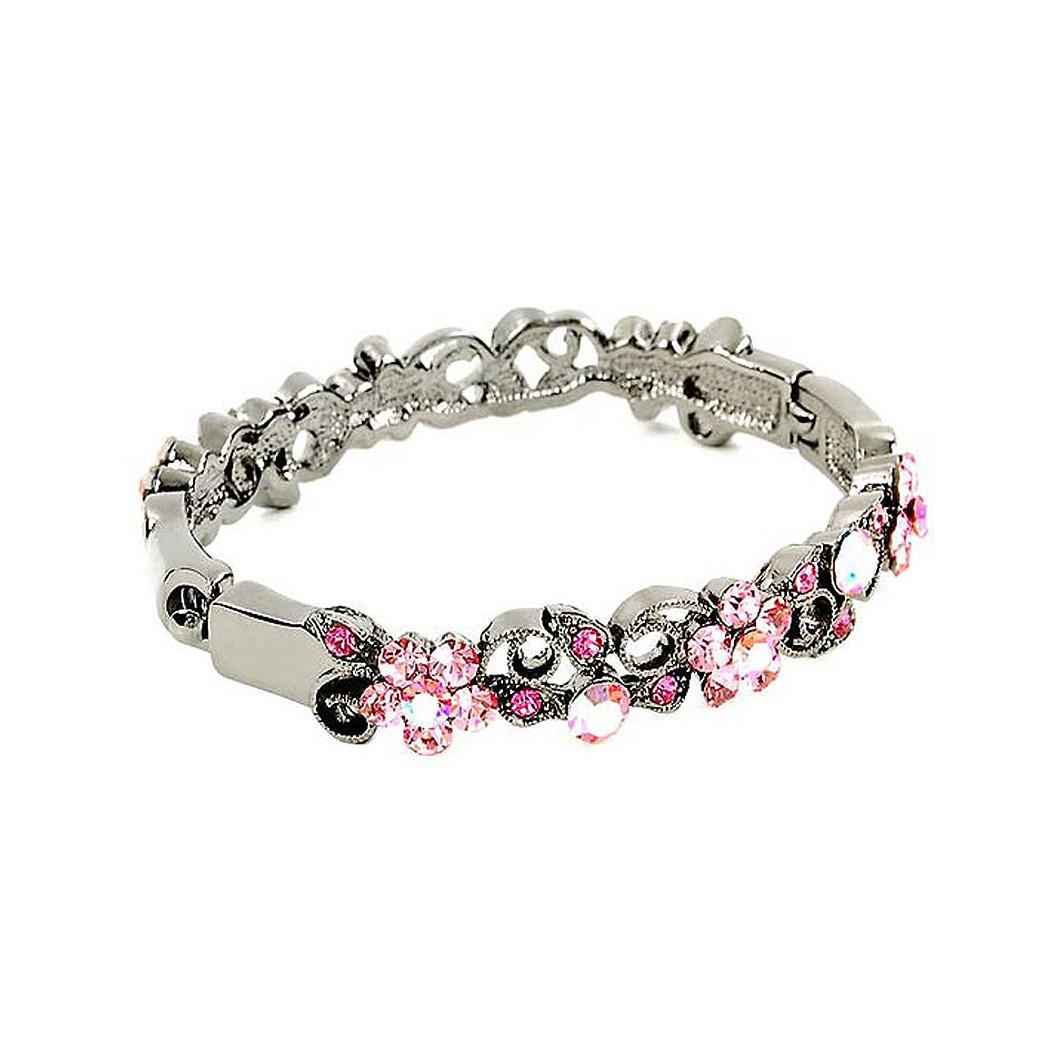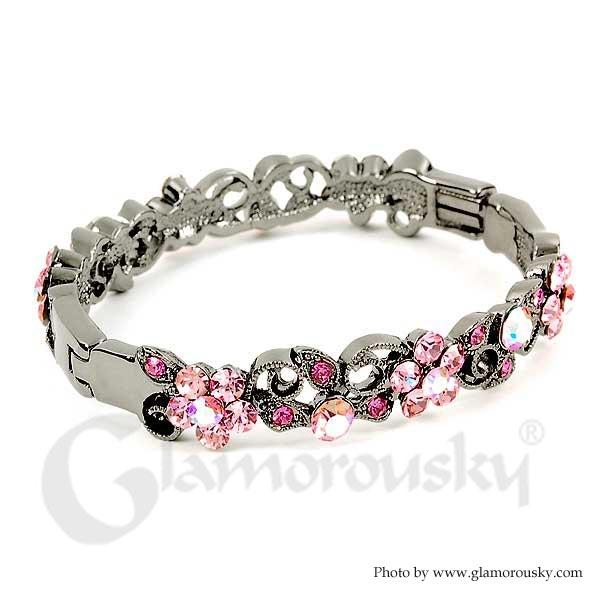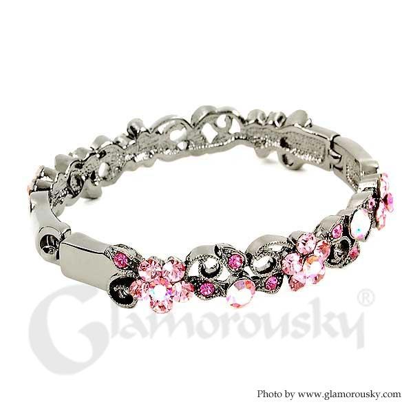 Elegant Flower Bangle with Pink Austrian Element Crystals