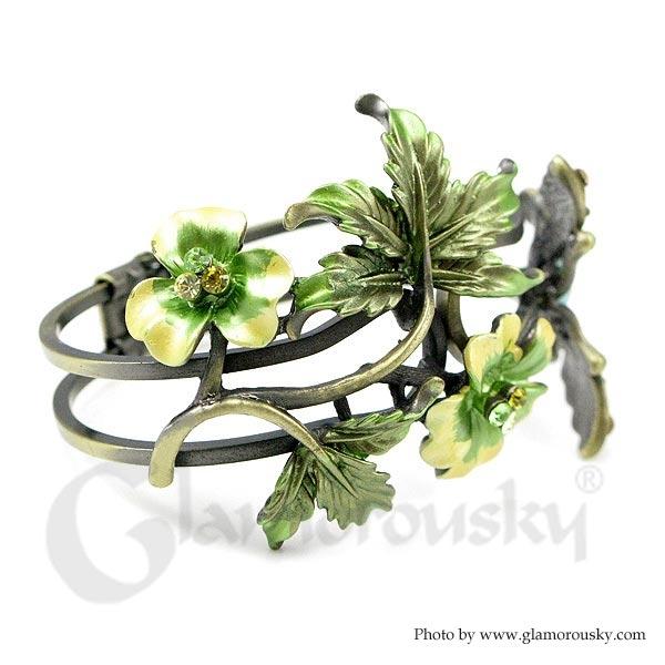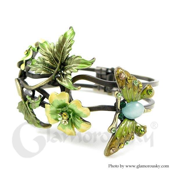 Elegant Butterfly Bangle with Green Austrian Element Crystal