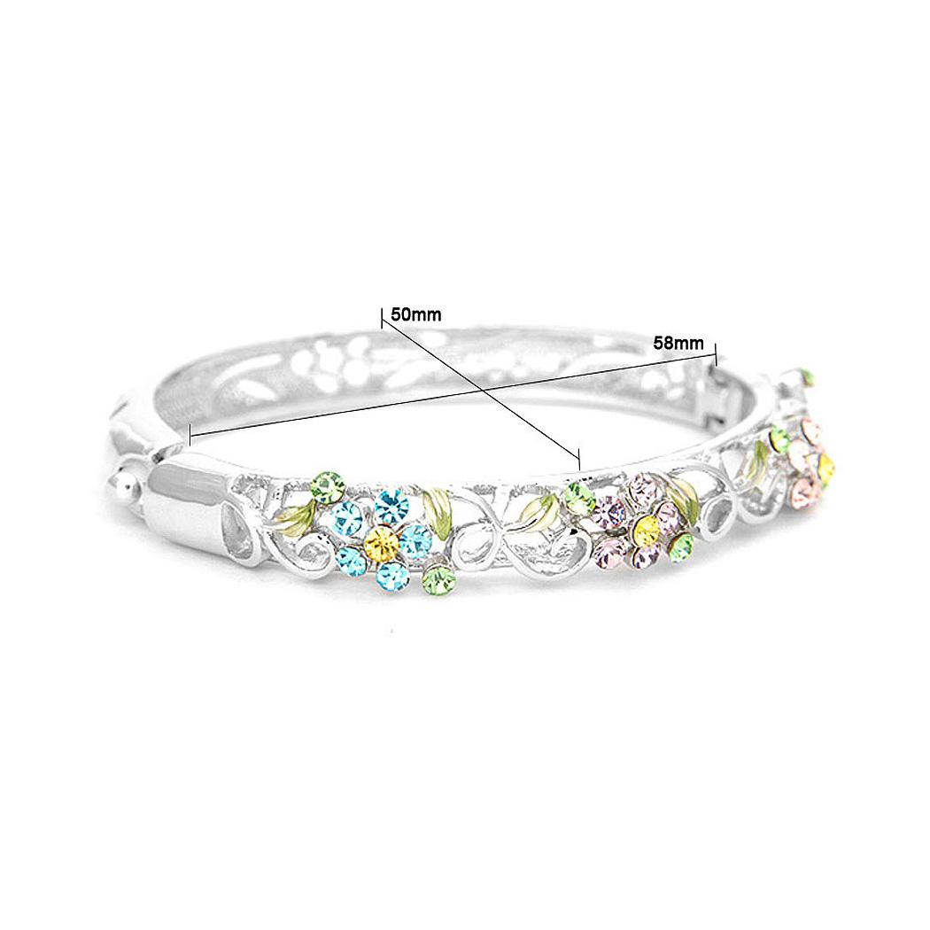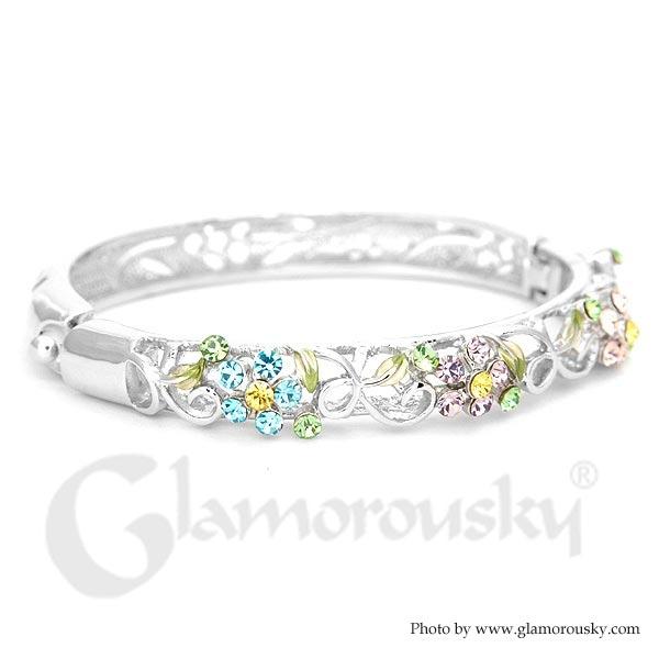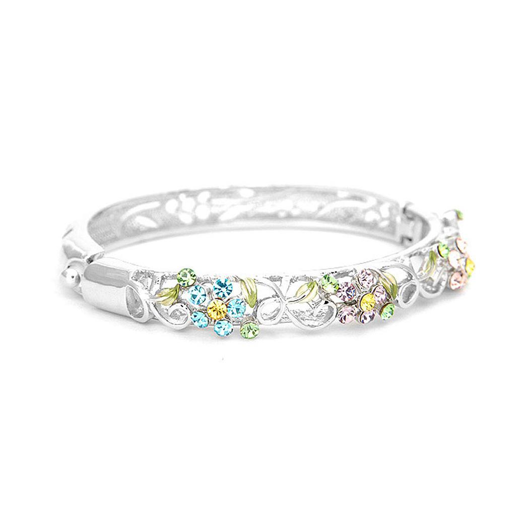 Elegant Flower Bangle with Multi-color Austrian Element Crystals