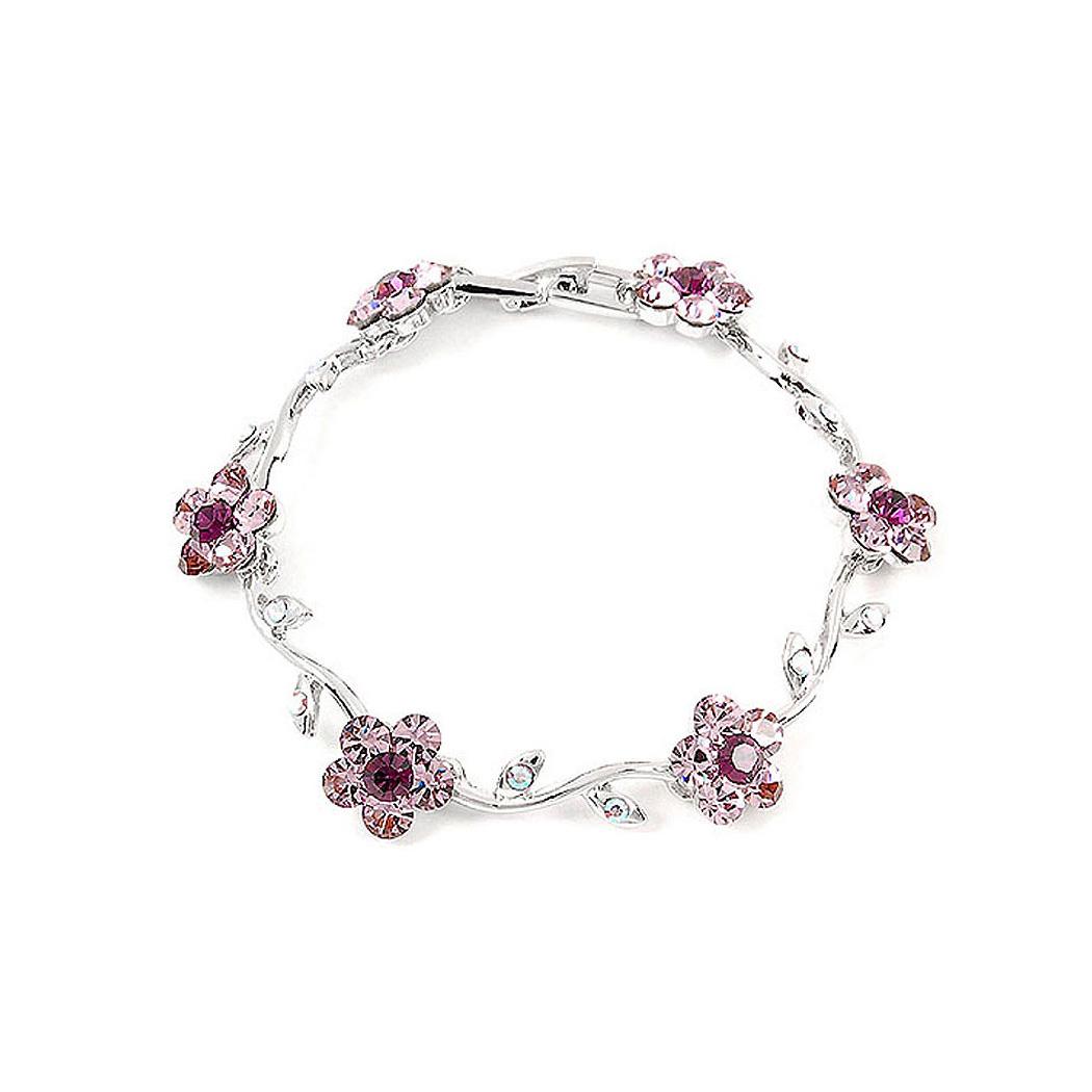 Purple Flower Bracelet with Purple Austrian Element Crystals