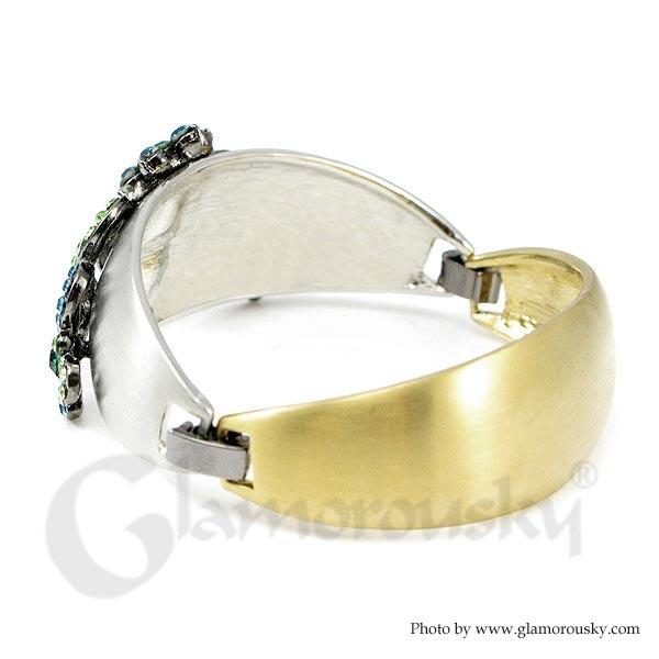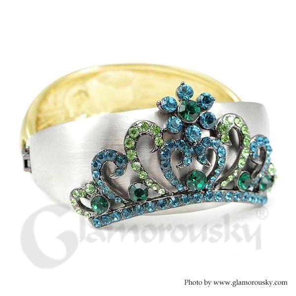 Elegant Crown Bangle with Blue and Green Austrian Element Crystal