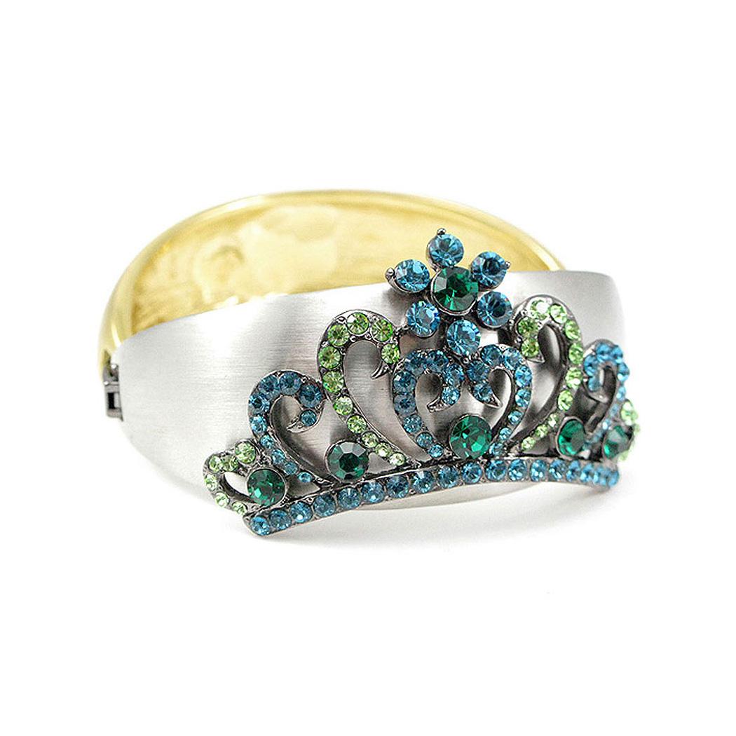 Elegant Crown Bangle with Blue and Green Austrian Element Crystal