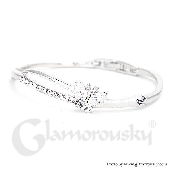 Category:BangleCollection:Flower NymphMetail:Silver-Plated PewterStone:Austrian Crystal(Silver)