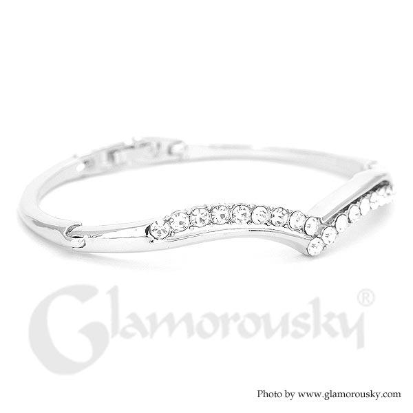 Elegant Bangle with Silver Austrian and CZ Beads