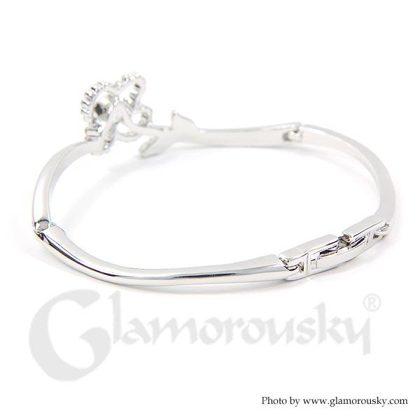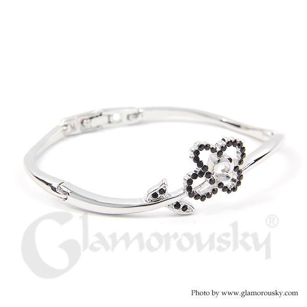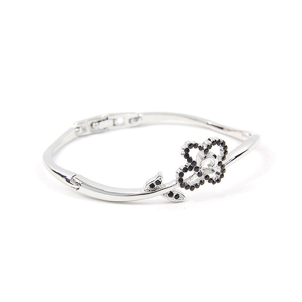Elegant Flower Bangle with Black Austrian Element Crystals