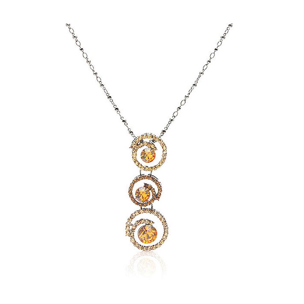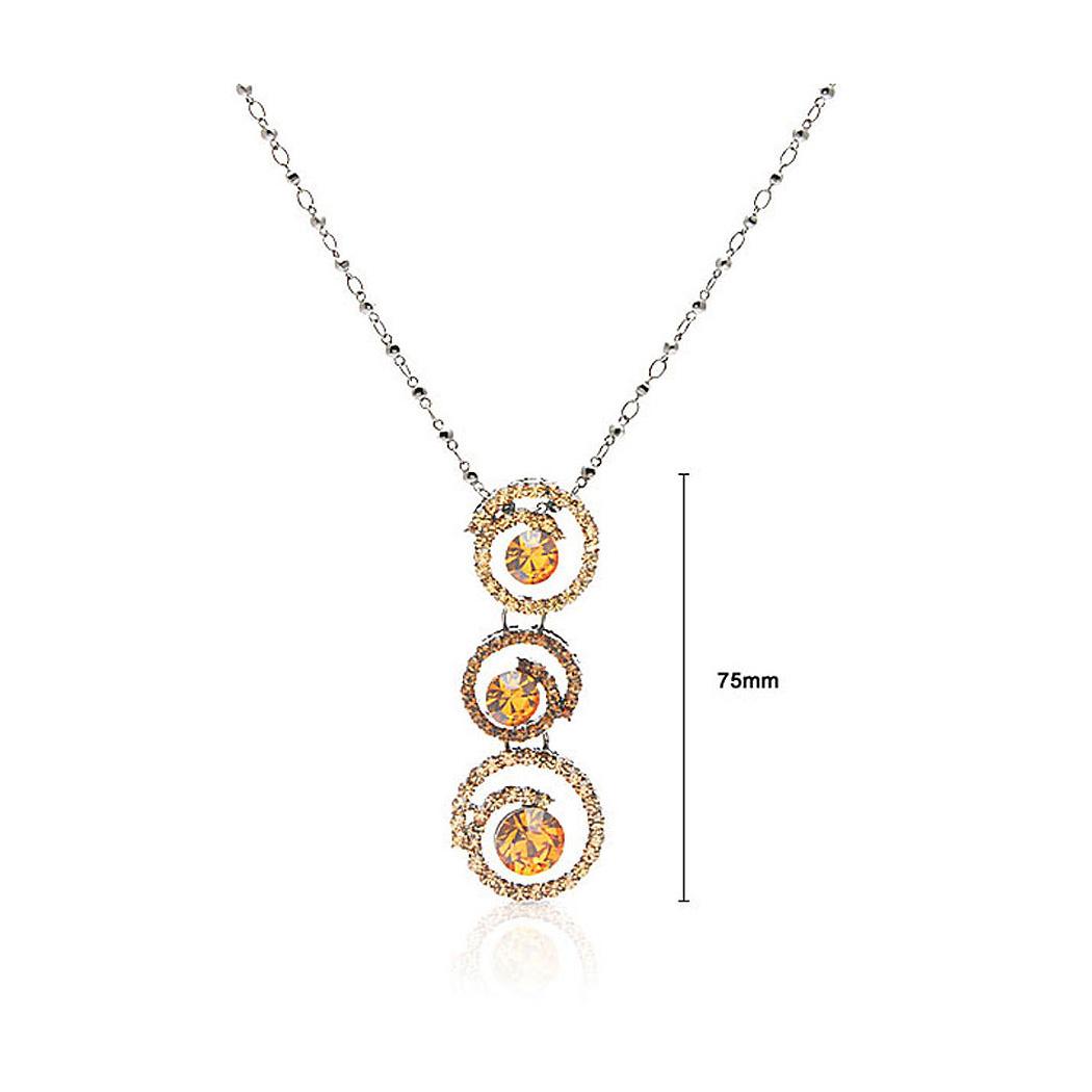 Golden Tri-Ripple CZ Pendant with Austrian Element Crystals and Necklace