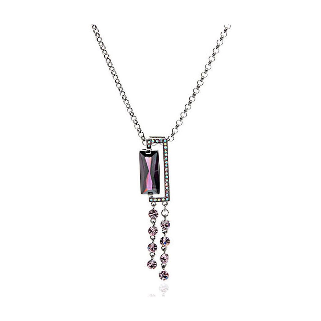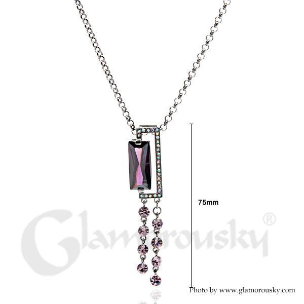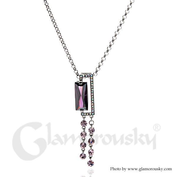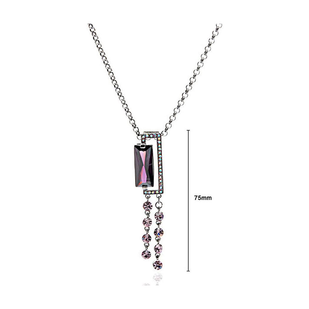 Purple Radient Shape Czech Crystal Bead Pendant with Austrian Element Crystals Tassels and Necklace