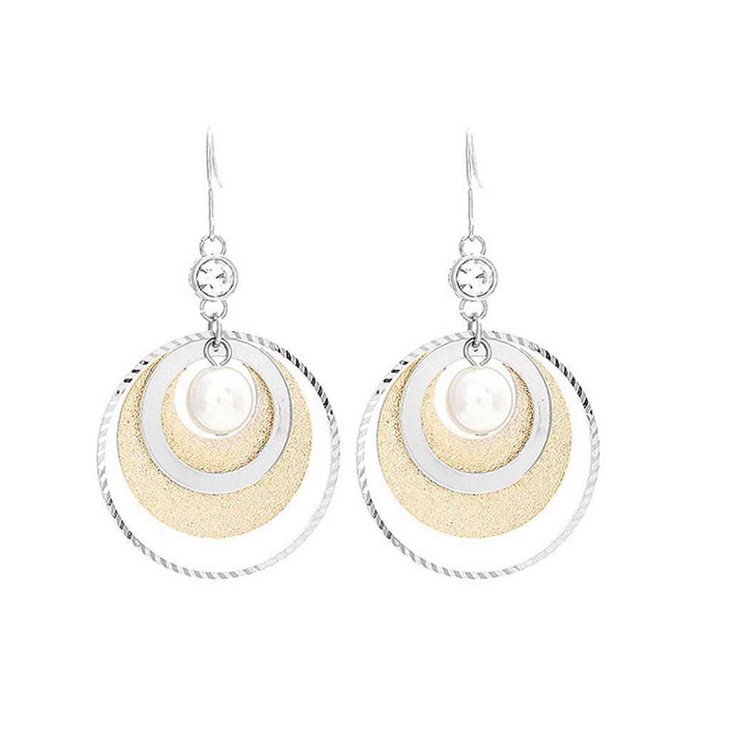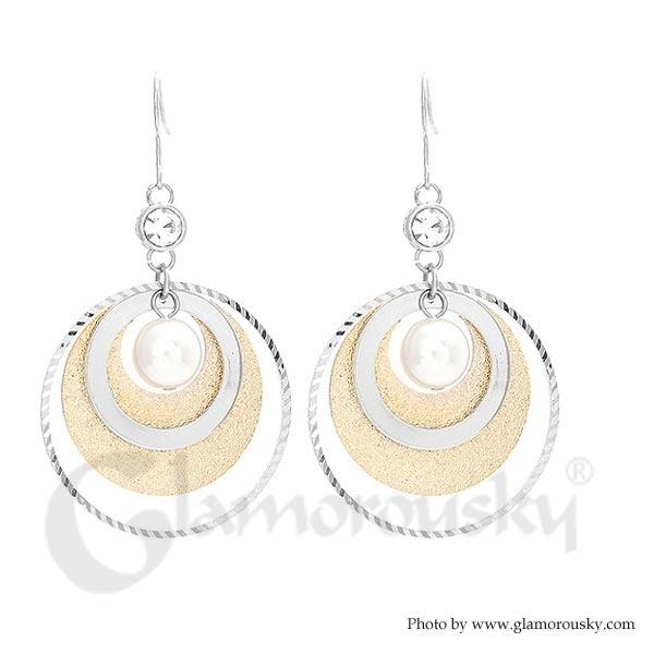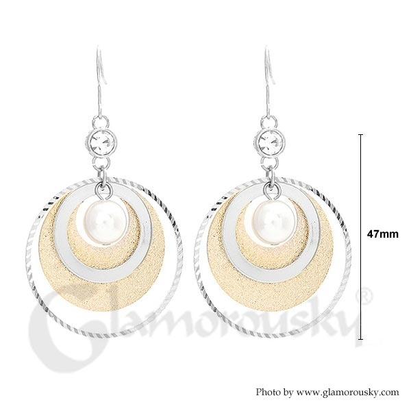 Circle Earrings with White Fashion Pearl and CZ