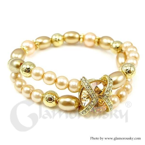 Fancy Fashion Pearl Bracelet with Gold Austrian Element Crystal