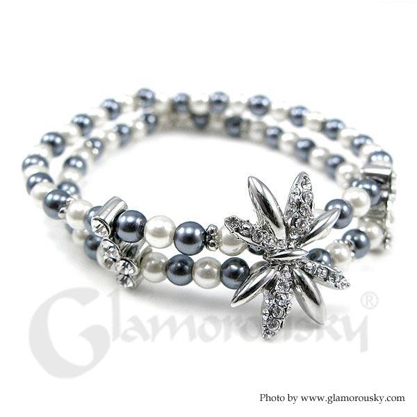 Fancy Fashion Pearl Bracelet with Dark Grey Austrian Element Crystal
