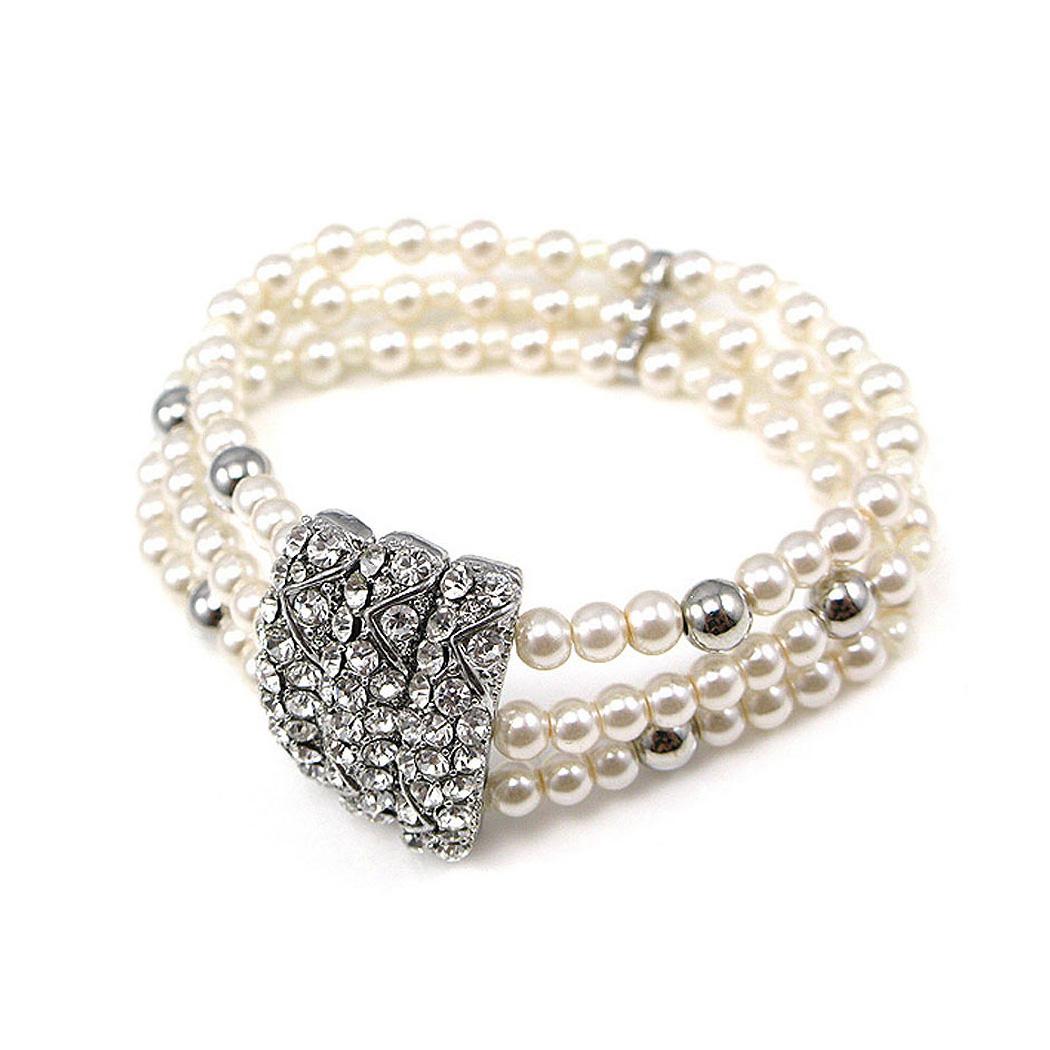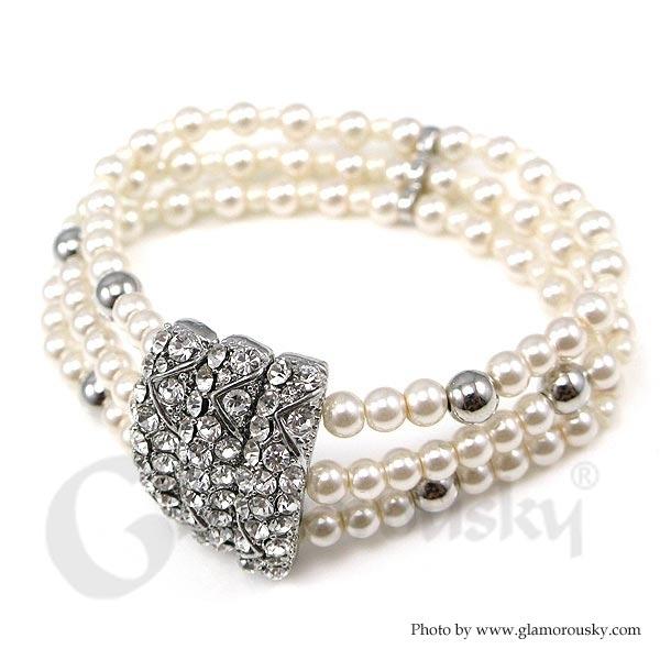 Fancy Fashion Pearl Bracelet with Silver Austrian Element Crystal