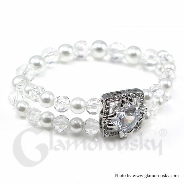 Fancy Fashion Pearl Bracelet with Silver Austrian Element Crystal