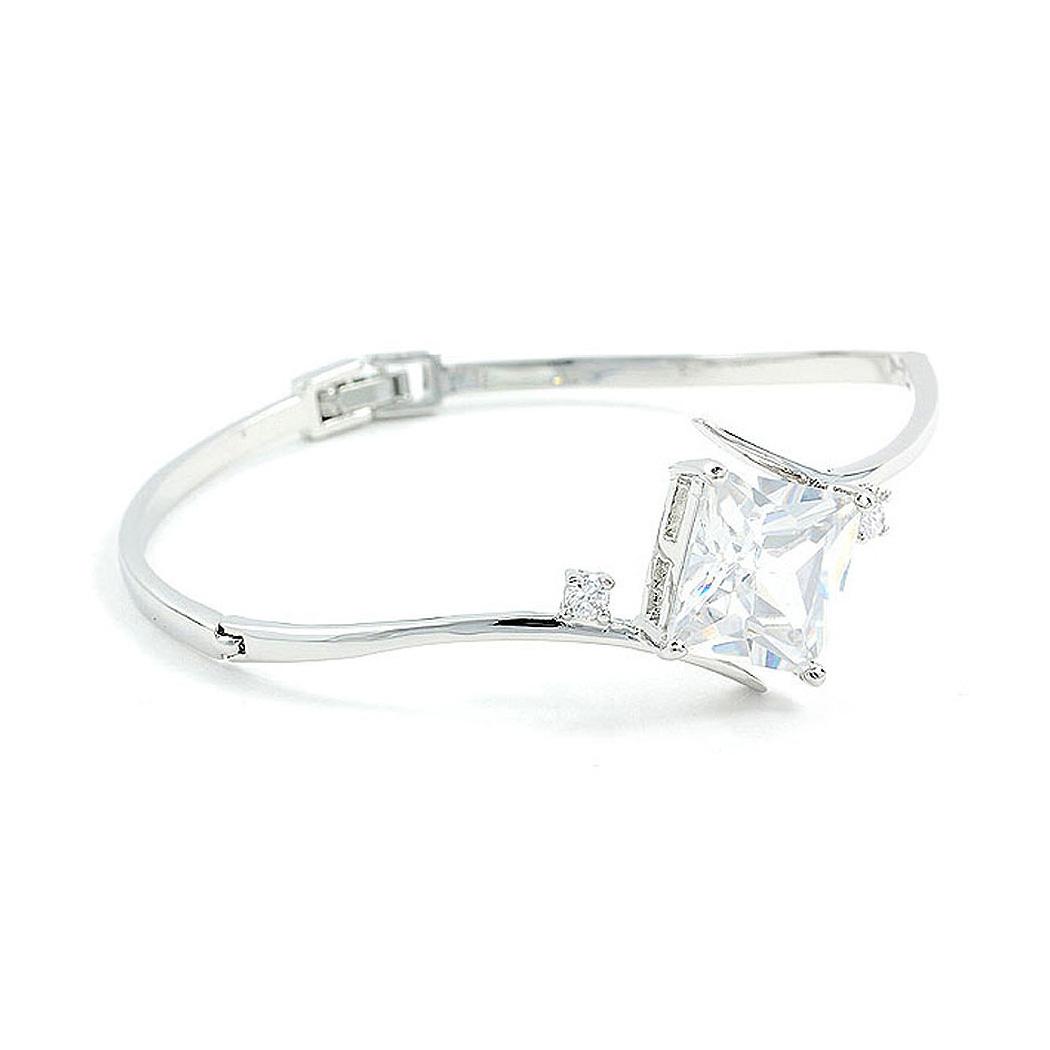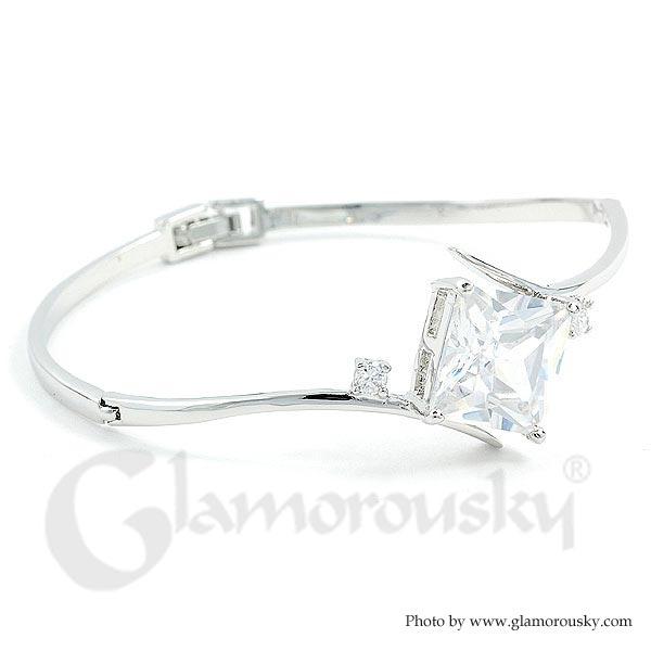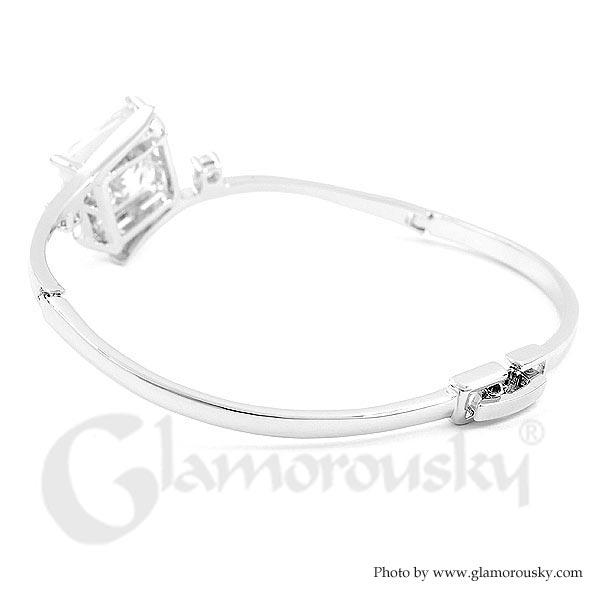 Glistening Bangle with Silver Austrian Crystals and CZ Bead