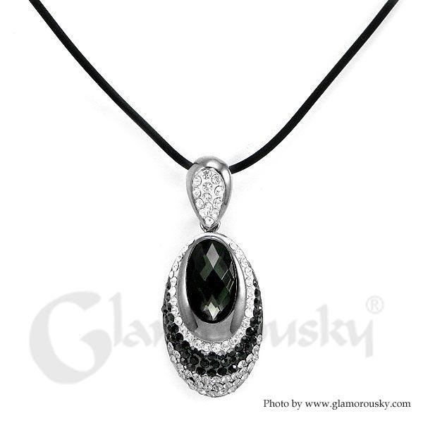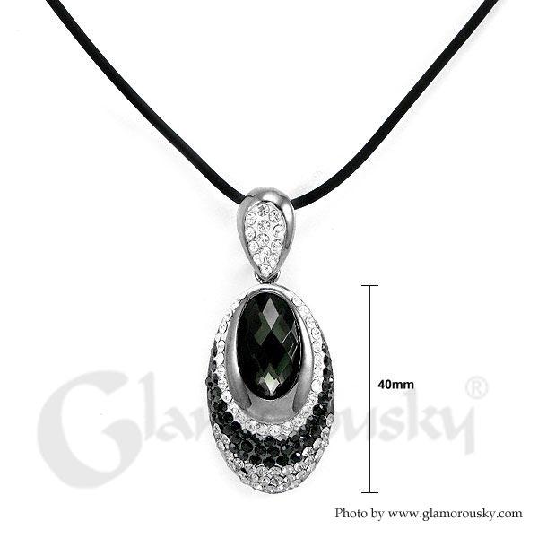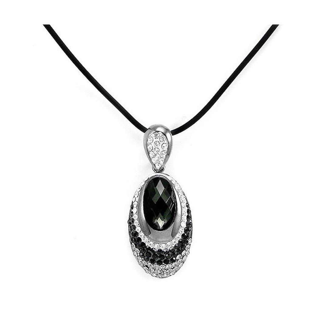 Elegant Black Crystal Glass Necklace with Black and Silver Austrian Element Crystals