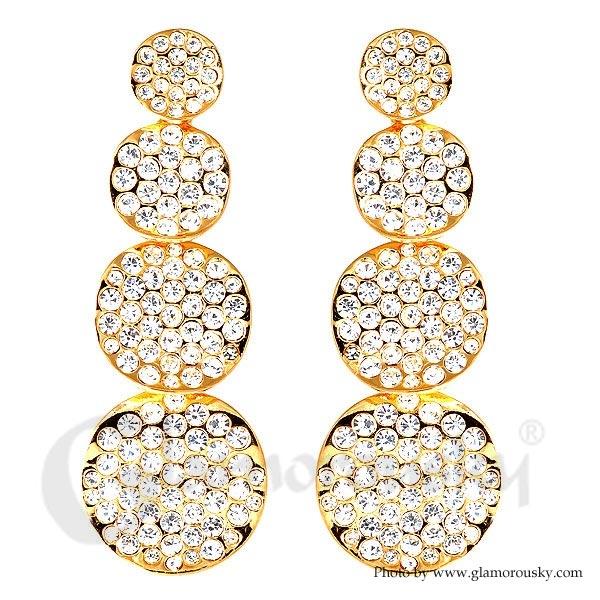 Category:Pair EarringsCollection:Banquet EleganceMetail:Silver-Plated Pewter(Golden)Stone:Austrian Crystal(Silver)